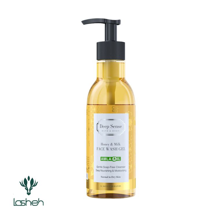 ژل شستشوی صورت شیر و عسل دیپ سنس مناسب پوستهای معمولی تا خشک محصولی است که تمام آلودگیهای موجود روی سطح پوست را از بین میبرد و باعث از بین نرفتن چربی روی پوست و خشک نشدن آن خواهد شد و هیچ گونه احساس کشش روی پوست ایجاد نمیکند. این محصول با شامل ترکیباتی مانند عصاره بابونه، تخم کتان، هیالورونیک اسید، پروتئین هیدرولیز شده شیر و ویتامین E است.