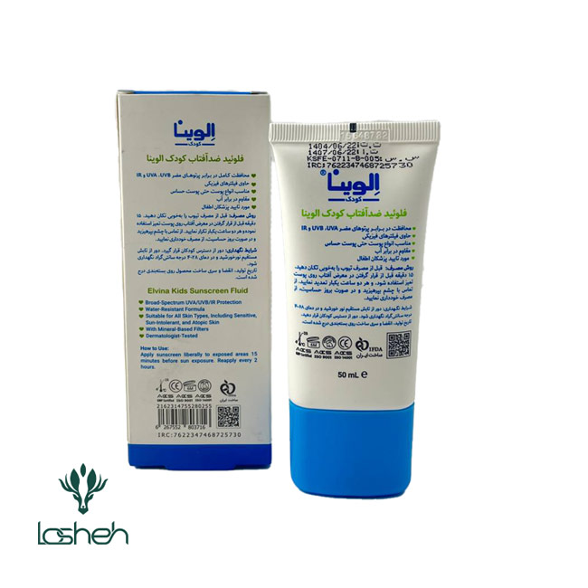 این ضد آفتاب با داشتن فیلترهای فیزیکی از پوست کودک در برابر اشعه های مضر نور خورشید محافظت می‌کند. فلوئید ضد آفتاب الوینا بخاطر نداشتن پارابن و مواد حساسیت زا برای استفاده روی پوست کودکان به ویژه پوست های حساس مناسب است. ضدآفتاب فلوئید الوینا دارای مقداری SP50 می‌باشد و توسط پزشکان اطفال توصیه می‌شود.