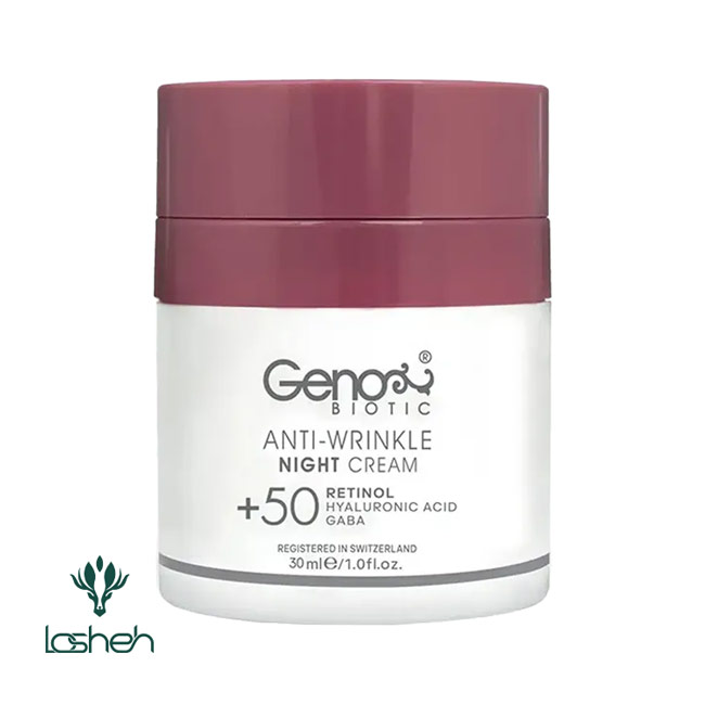 کرم ضد چروک شب مناسب 50+ ژنوبایوتیک حاوی رتینول کپسوله شده است و خاصیت شبه بوتاکس دارد که باعث کاهش استرس عضلات پوست میشود و چین و چروک را به صورت عمقی کاهش میدهد. این کرم مناسب افراد بالای 50 سال است و با به دام انداختن مولکول‌های آبرسان در عمق پوست و حفظ رطوبت پوست در طول شب با ذخیره مجدد آب در لایه‌های پوستی باعث بازگردانی آب داخل سلول‌ها در طول شب میشود و از خشکی پوست صورت جلوگیری میکند.
