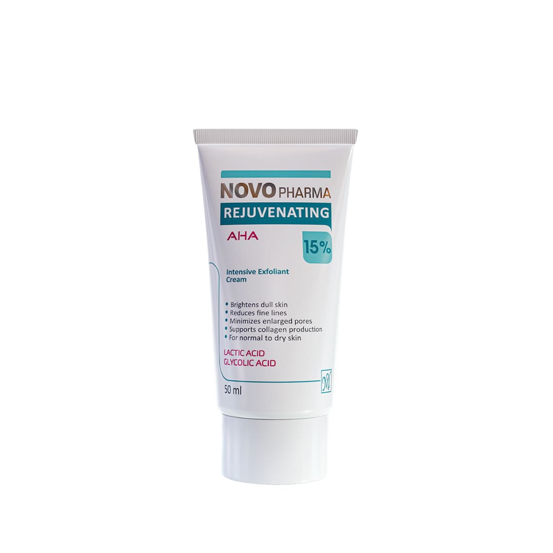 کرم جوان کننده AHA 15% نووفارما محصولی از برند ایرانی مای فارما است که برای لایه برداری قوی پوست، روشن کردن پوست، کاهش چین و چروک و جوانسازی پوست استفاده میشود. این کرم حاوی 15% اسید آلفا هیدروکسی (AHA) است که به لایه برداری سلولهای مرده پوست، تحریک کلاژن سازی و افزایش شفافیت و شادابی پوست کمک میکند. همچنین، این کرم حاوی عصارههای گیاهی مانند: عصاره چای سبز، عصاره آلوئه ورا و عصاره خیار است که به آبرسانی و التیام پوست کمک میکنند.