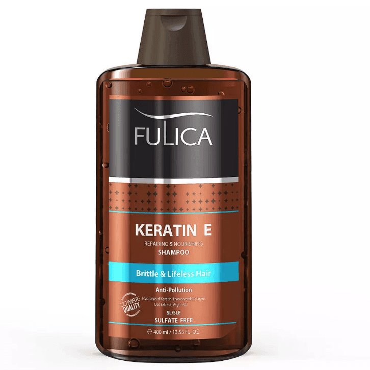شامپو تقویت کننده مو فولیکا مدل Keratin E مناسب موهای آسیب دیده و دارای موخوره حجم 400 میلی لیتر