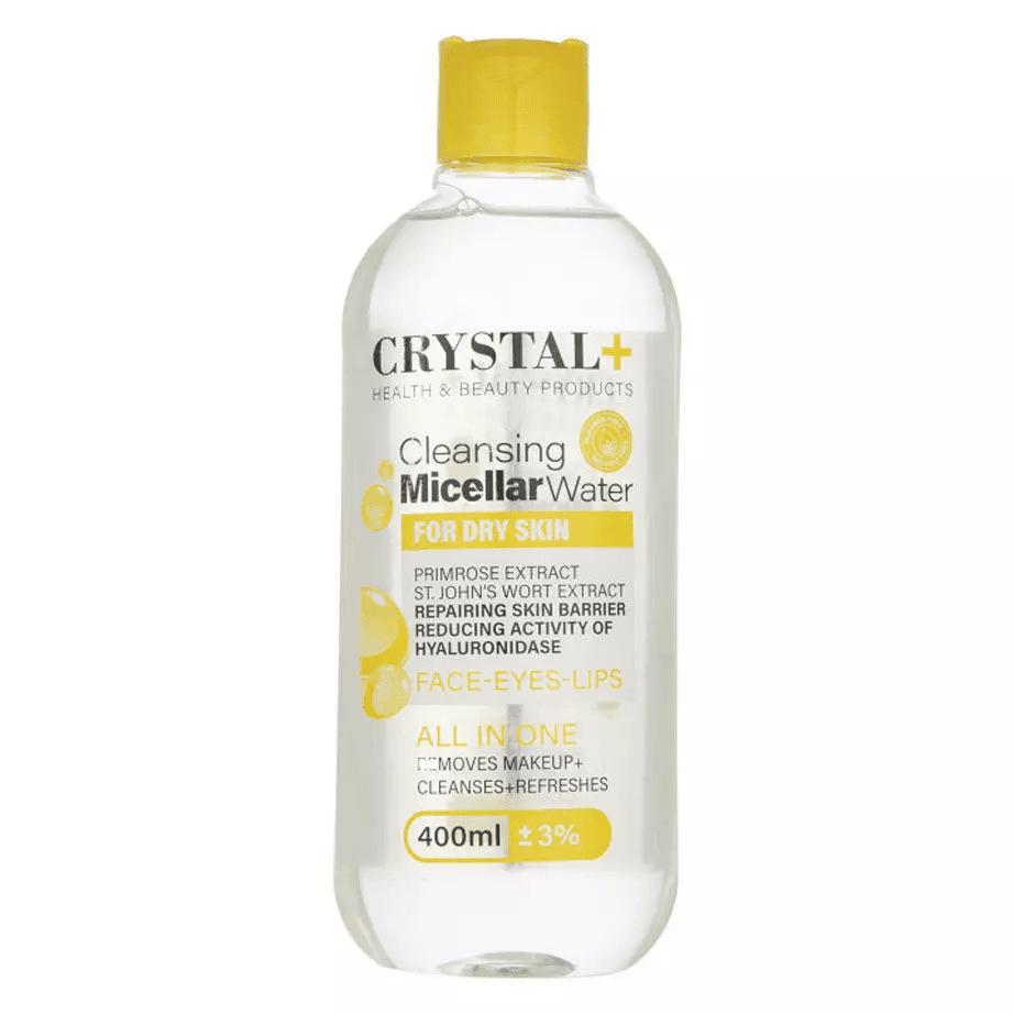 محلول پاک کننده آرایش کریستال پلاس حاوی عصاره گل پامچال مناسب پوست خشک حجم 400 میل